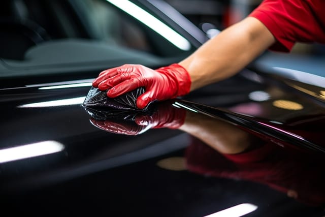 - Buff off the wax with a microfiber towel, revealing a deep, glossy shine.