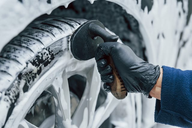 Clean the wheels with a dedicated wheel cleaner and brushes.